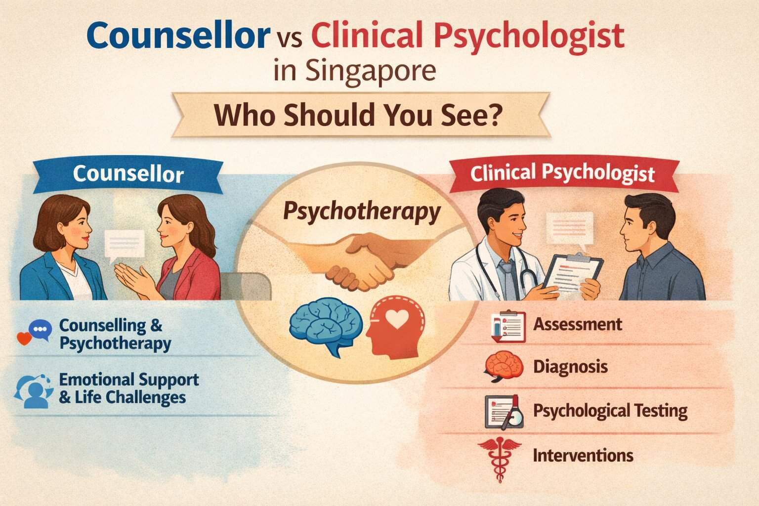 When people begin searching for mental health support in Singapore, they often come across several professional titles such as counsellor, clinical psychologist, and psychiatrist. These titles can be confusing, especially because some of their work appears similar from a client’s perspective.